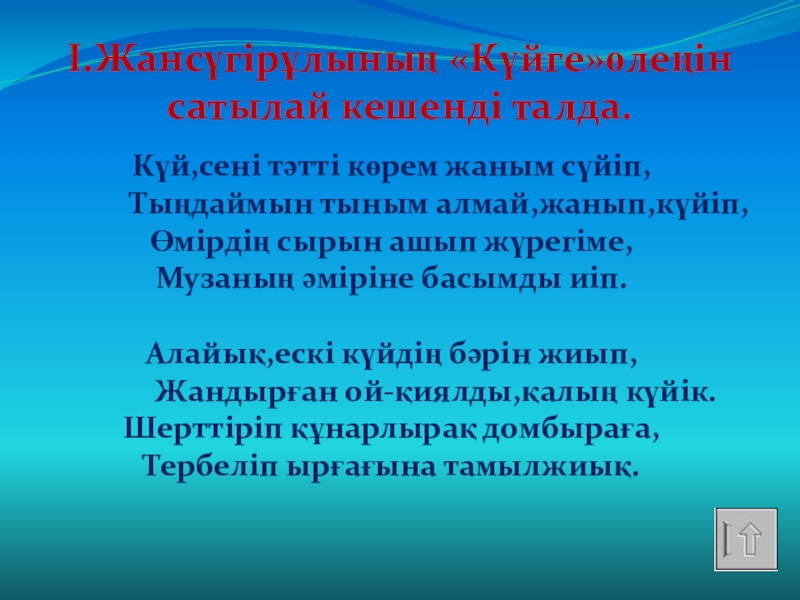 Слайд 16І.Жансүгірұлының бір өлеңін жатқа