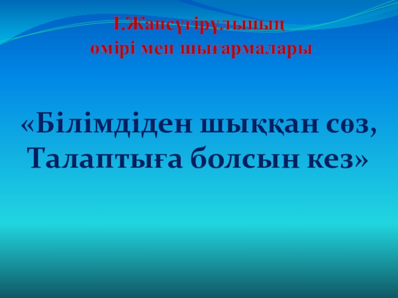 І.Жансүгірұлының өмірі мен шығармалары«Білімдіден шыққан сөз,Талаптыға болсын кез»