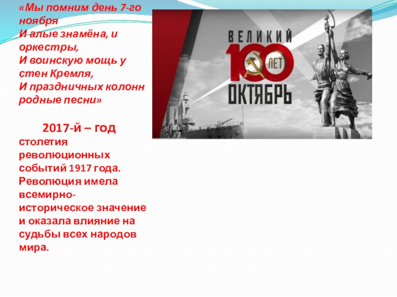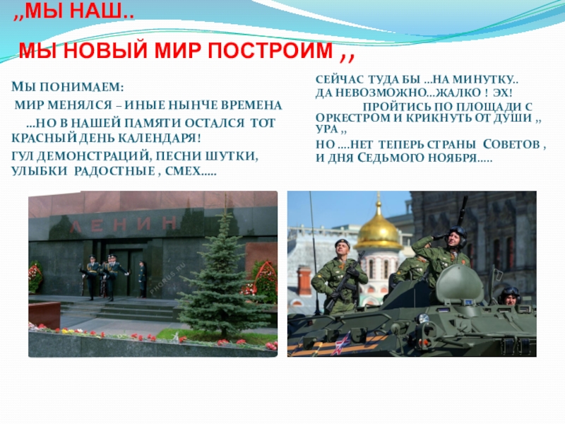 НО ….НЕТ ТЕПЕРЬ СТРАНЫ СОВЕТОВ ,И ДНЯ СЕДЬМОГО НОЯБРЯ…..