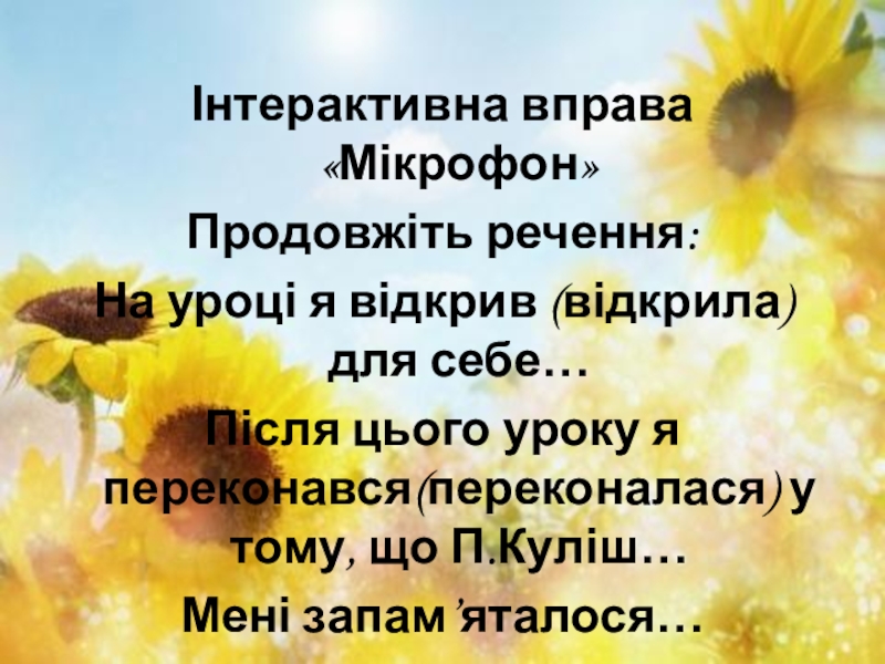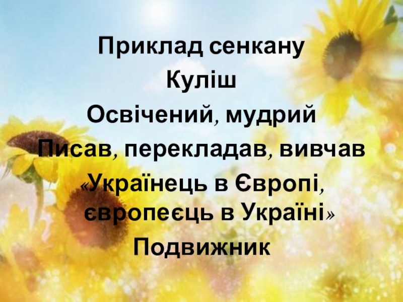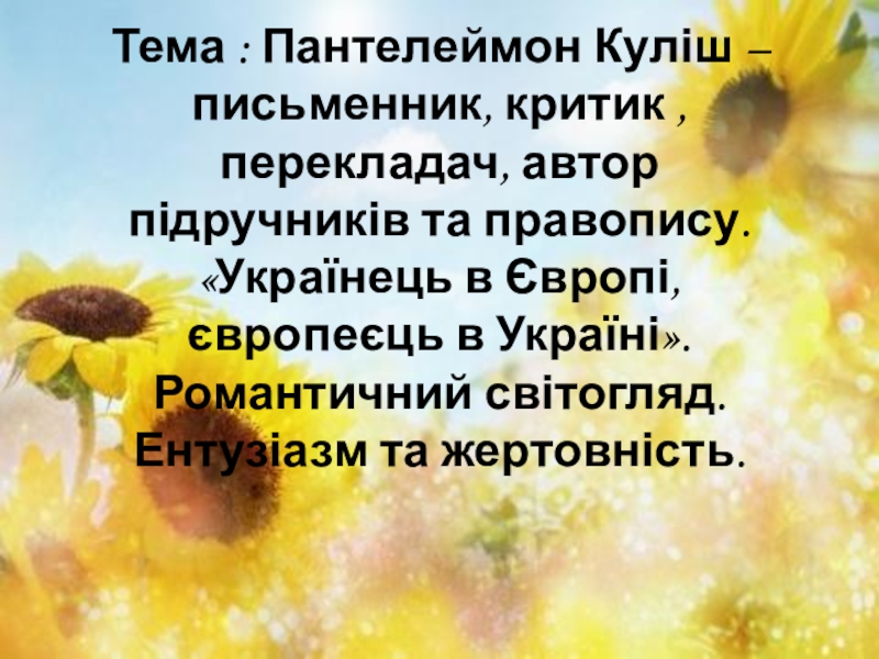 та правопису. «Українець в Європі, європеєць в Україні». Романтичний світогляд. Ентузіазм та жертовність.