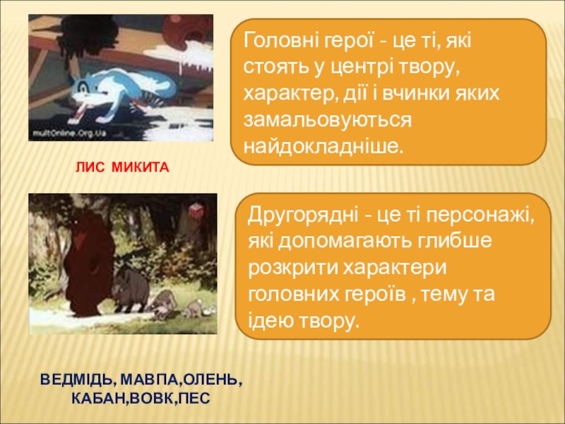 Другорядні - це ті персонажі, які допомагають глибше розкрити характери головних героїв , тему та ідею твору.