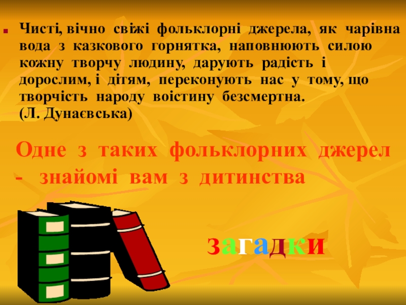 Одне з таких фольклорних джерел - знайомі вам з дитинства