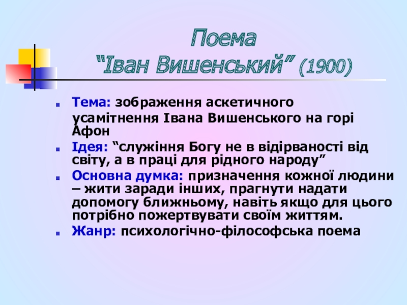 Ідея: “служіння Богу не в відірваності від світу, а в праці для рідного народу”