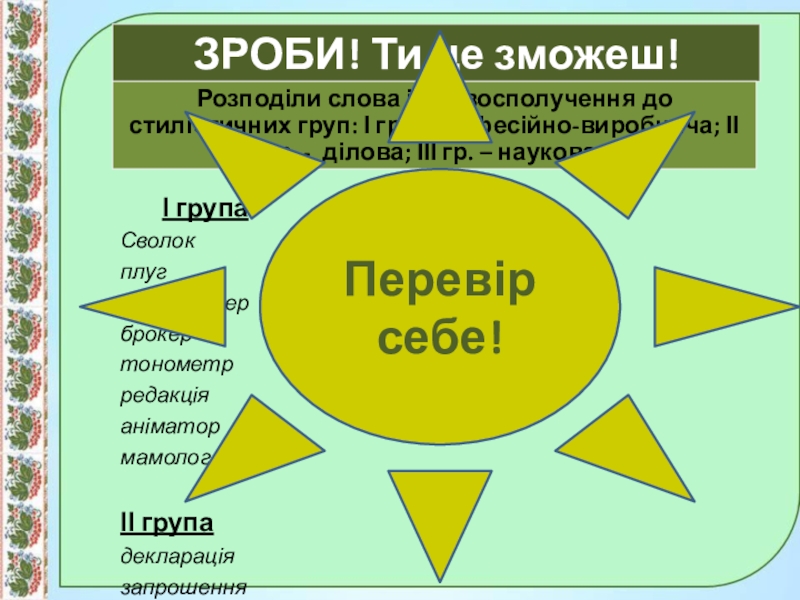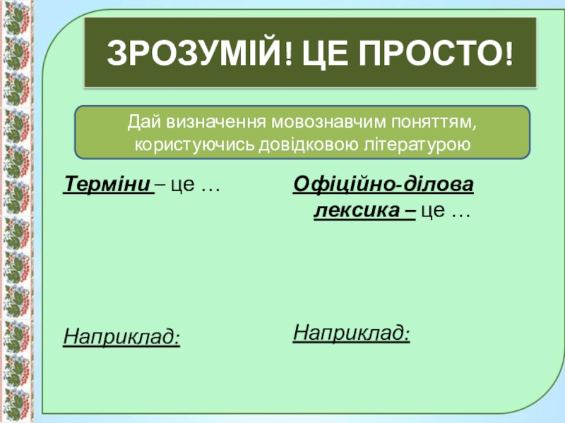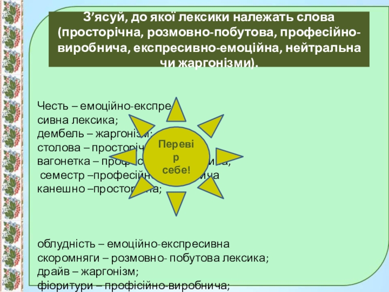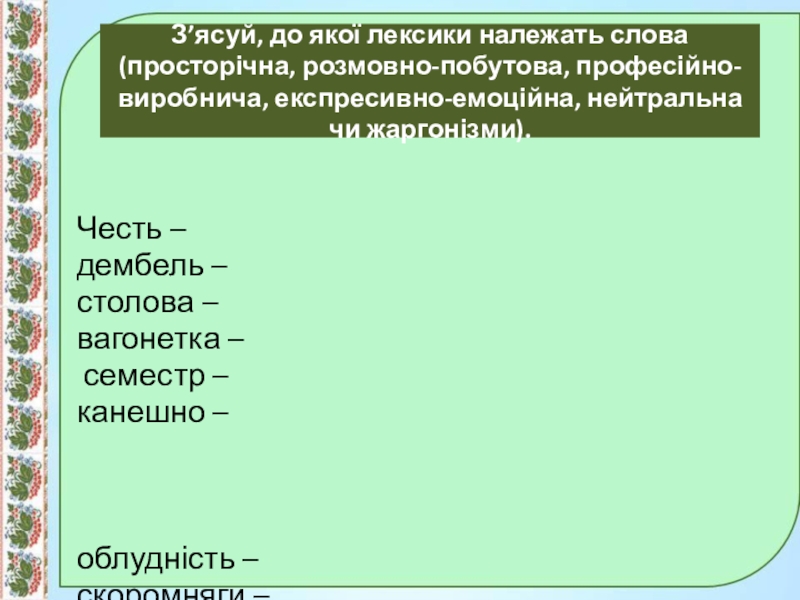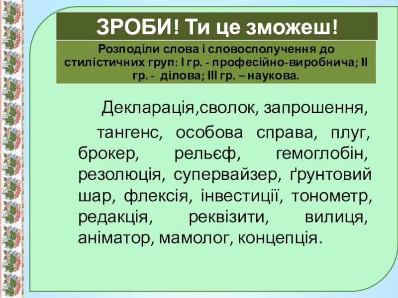 3. Удосконалимо вміння доцільно вживати наукову, ділову та професійно-виробничу лексику у власному мовленні.