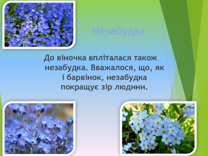 До віночка впліталася також незабудка. Вважалося, що, як і барвінок, незабудка покращує зір людини.
