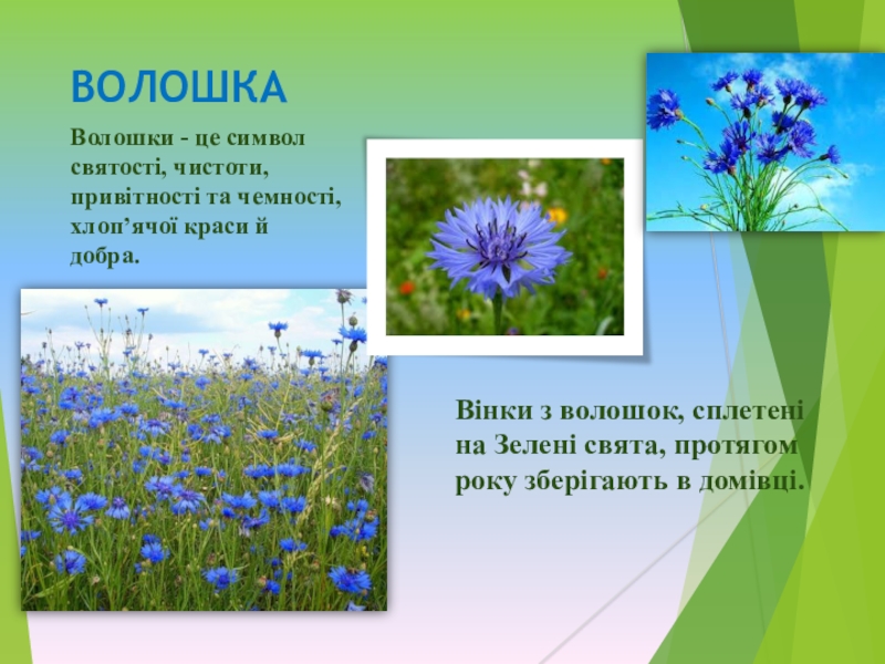 Волошки - це символ святості, чистоти, привітності та чемності, хлоп’ячої краси й добра.
