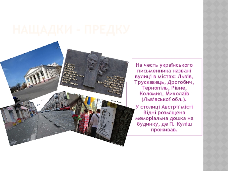 На честь українського письменника названі вулиці в містах: Львів,