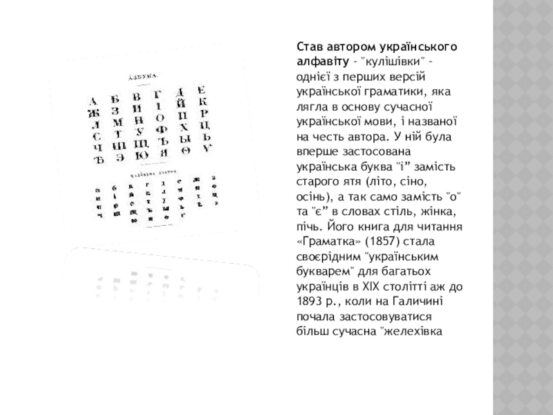 Слайд 8Став автором українського алфавіту - "кулішівки" - однієї з перших версій