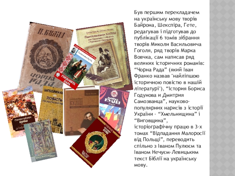 Слайд 9Був першим перекладачем на українську мову творів Байрона, Шекспіра, Гете, редагував
