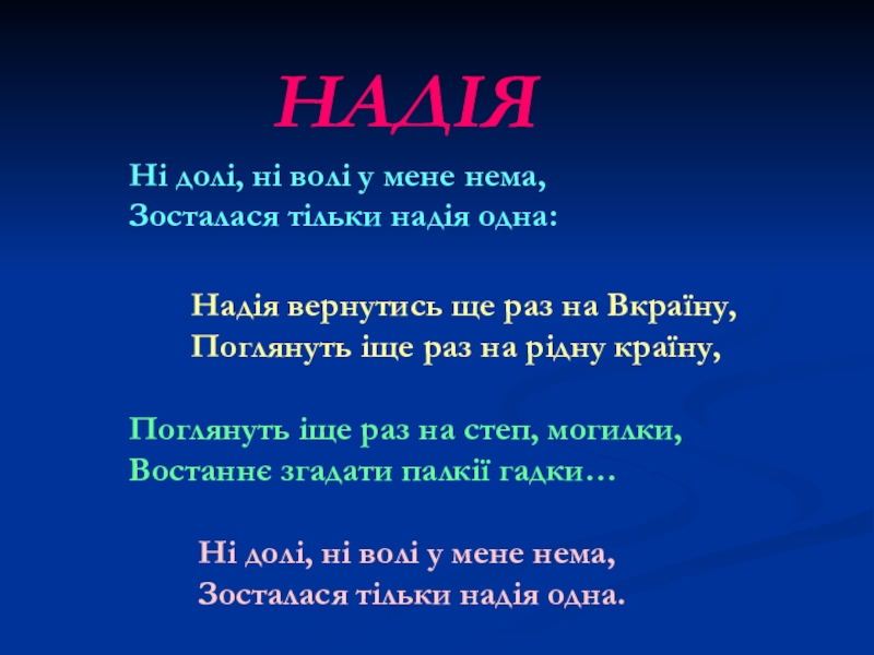 Надія вернутись ще раз на Вкраїну, Поглянуть іще раз на рідну країну,