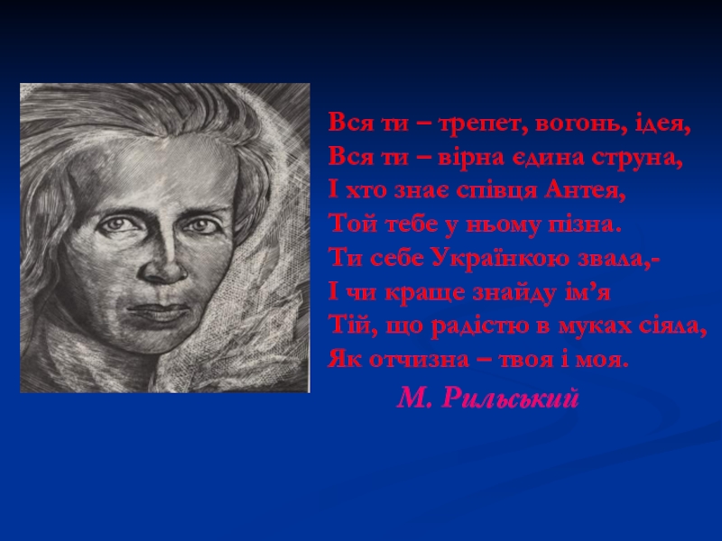 Над хвилями моря, на скелі Хороша дівчина сидить, В лавровім вінку вона сяє, Співецькую ліру держить…