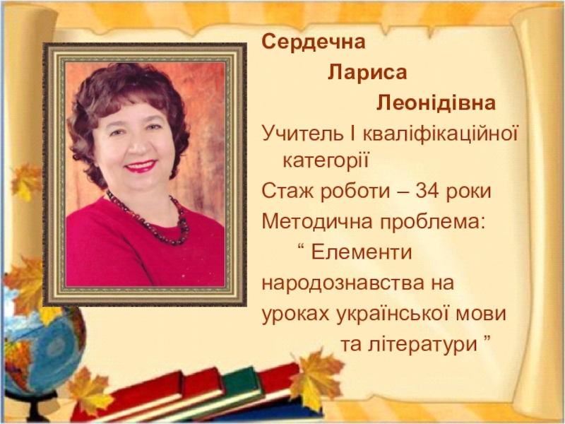 Сердечна      Лариса          ЛеонідівнаУчитель