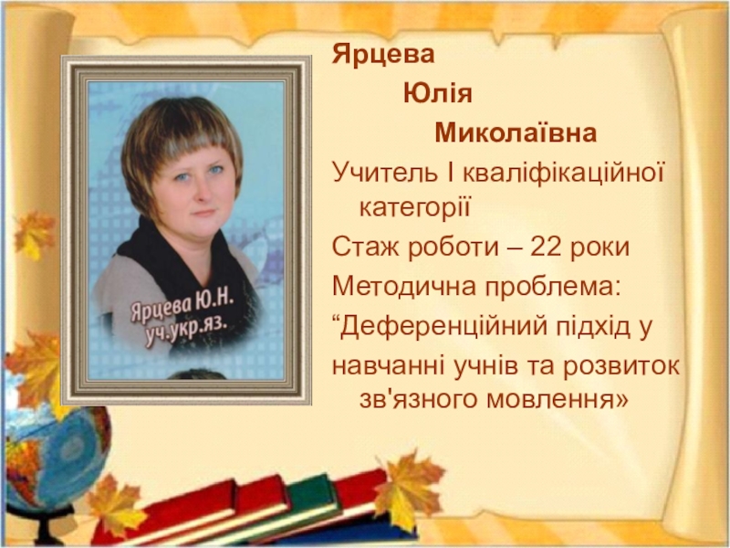 Ярцева     Юлія       МиколаївнаУчитель І кваліфікаційної категоріїСтаж роботи