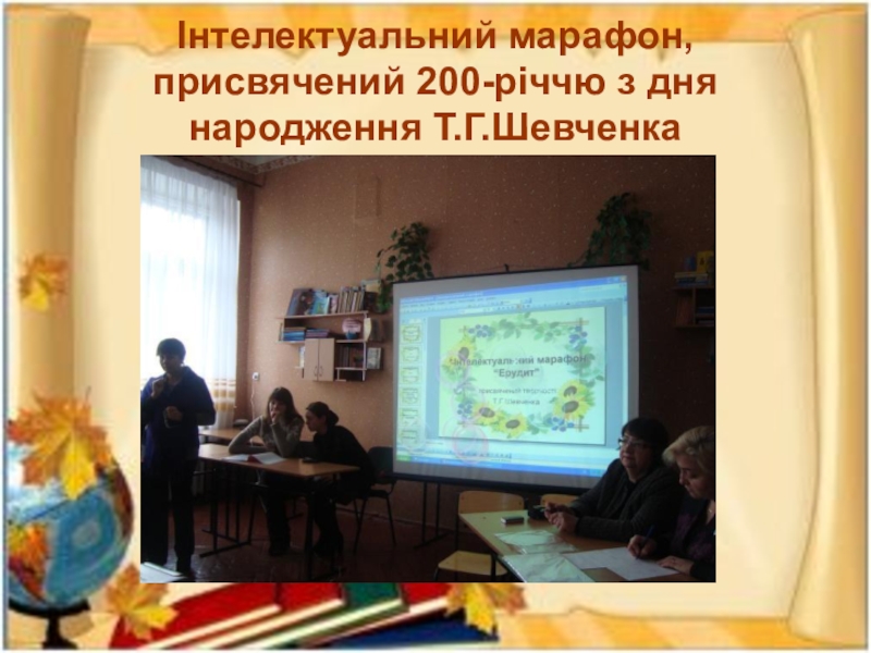 Слайд 11Інтелектуальний марафон, присвячений 200-річчю з дня народження Т.Г.Шевченка