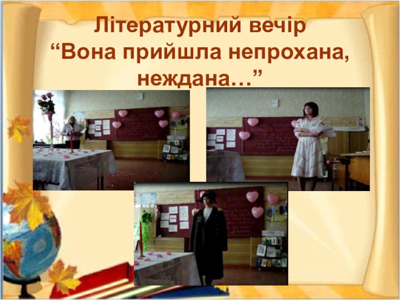 Слайд 21Літературний вечір “Вона прийшла непрохана, неждана…”