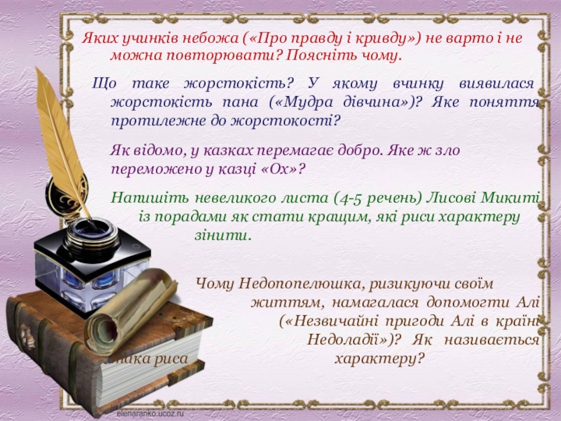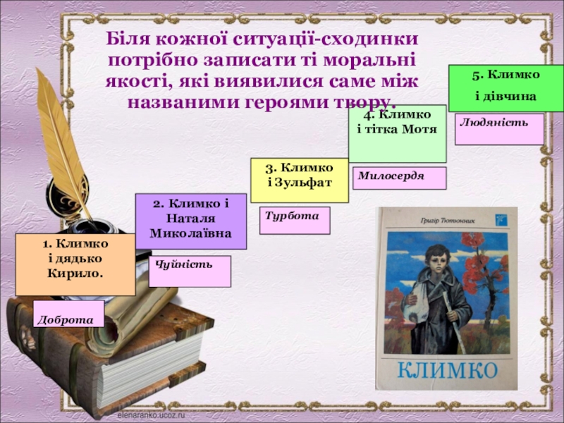Біля кожної ситуації-сходинки потрібно записати ті моральні якості, які виявилися саме між названими героями твору.