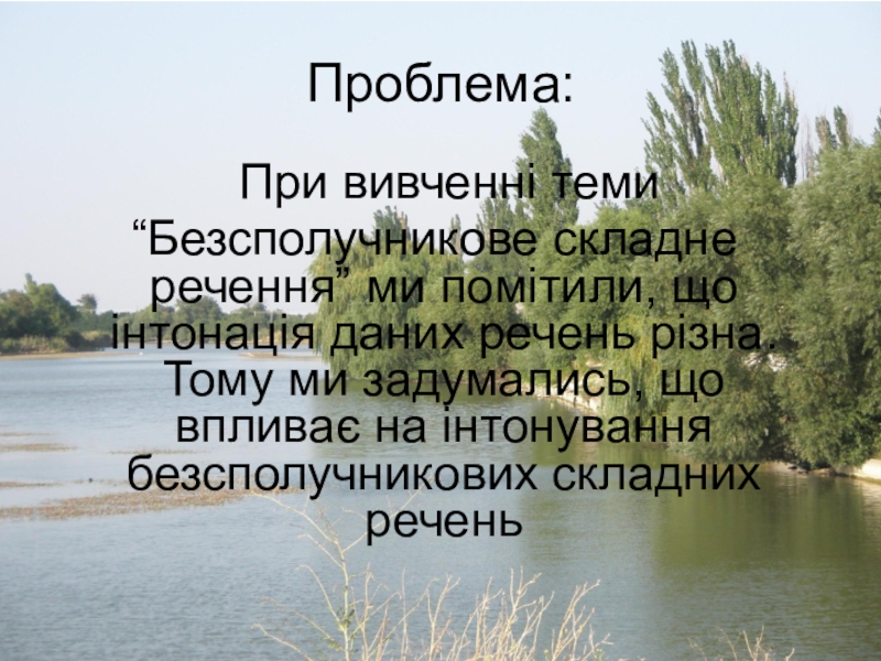 Проблема:	При вивченні теми “Безсполучникове складне речення” ми помітили, що інтонація даних речень різна. Тому ми задумались, що