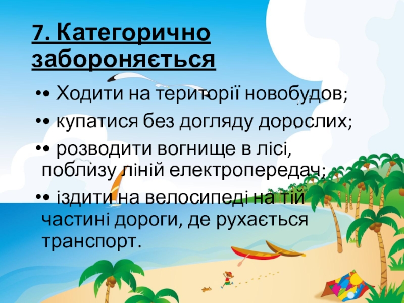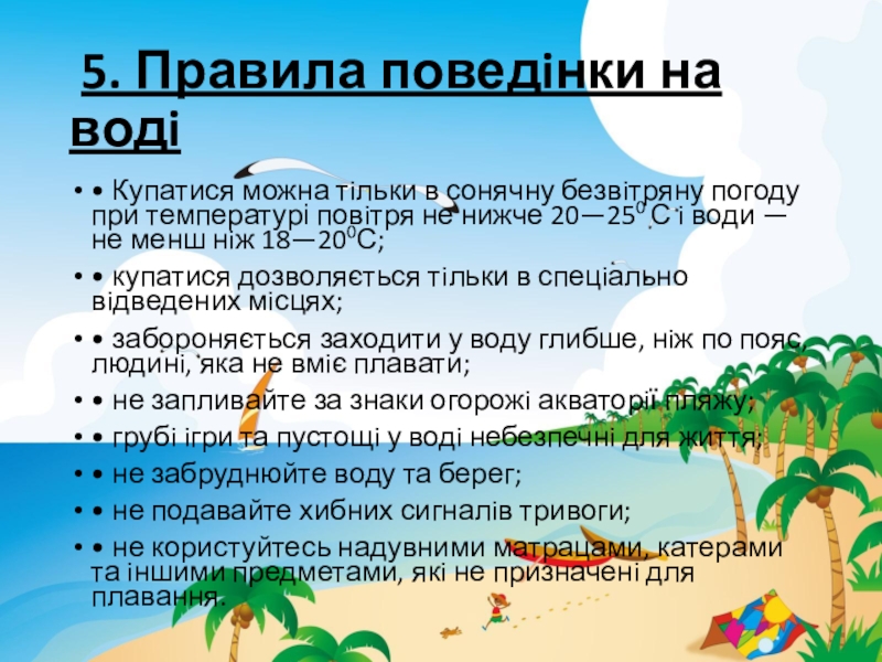 • Купатися можна тiльки в сонячну безвiтряну погоду