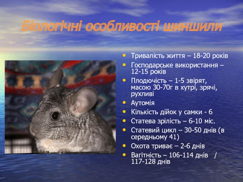 Слайд 2Біологічні особливості шиншили