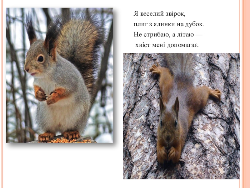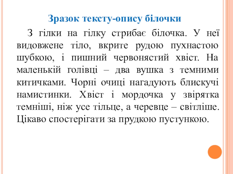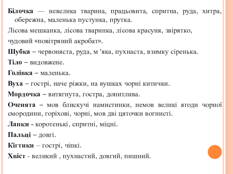 Слайд 9Білочка — невелика тварина, працьовита, спритна, руда, хитра, обережна, маленька пустунка,