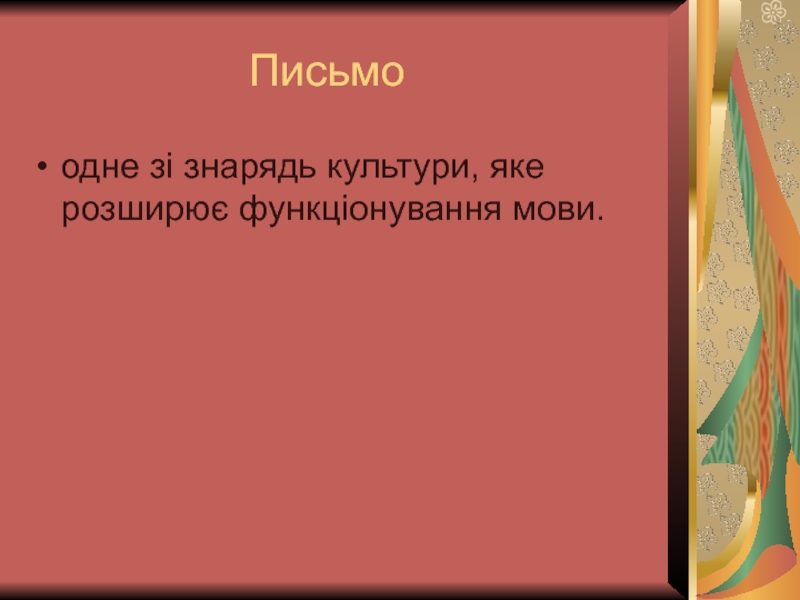 Кирилиця складалася з 43 букв, у її основі лежав грецький алфавіт, а глаголиця мала 38 букв і дуже відрізнялася від кирилиці. У X ст. кирилиця і глаголиця існували одночасно. Пізніше почали користуватися лише кирилицею. Так виникла писемність.