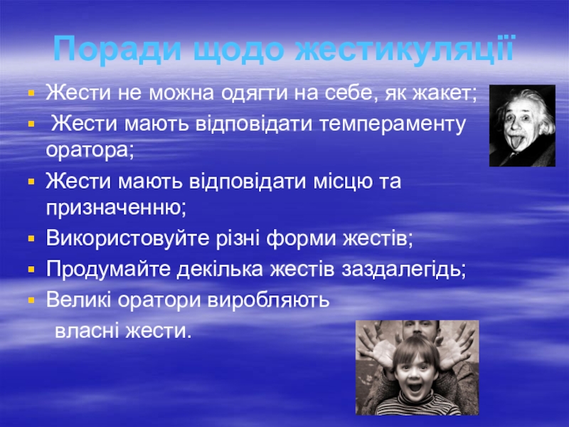 Жестикуляція , дикція, словарний запас , діапазон і тембр голосу, образність