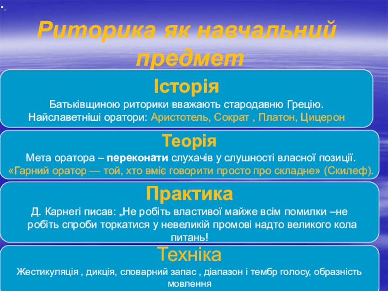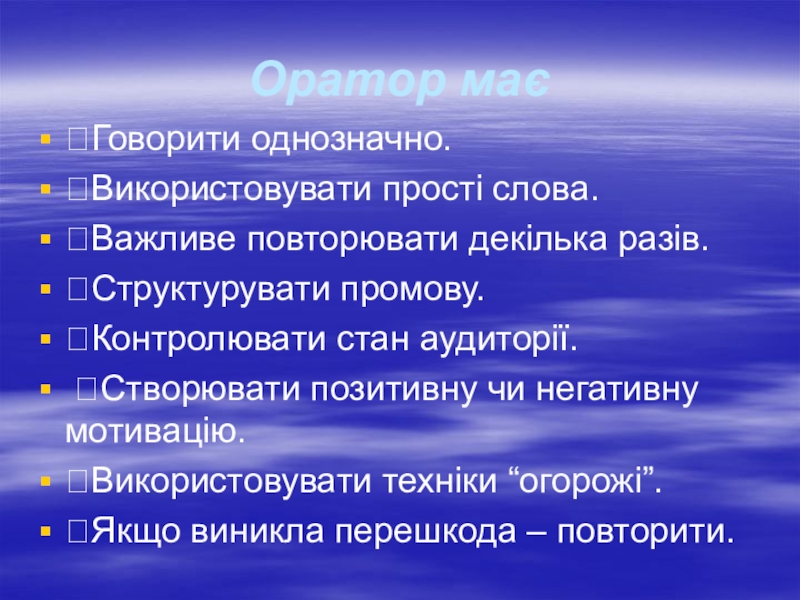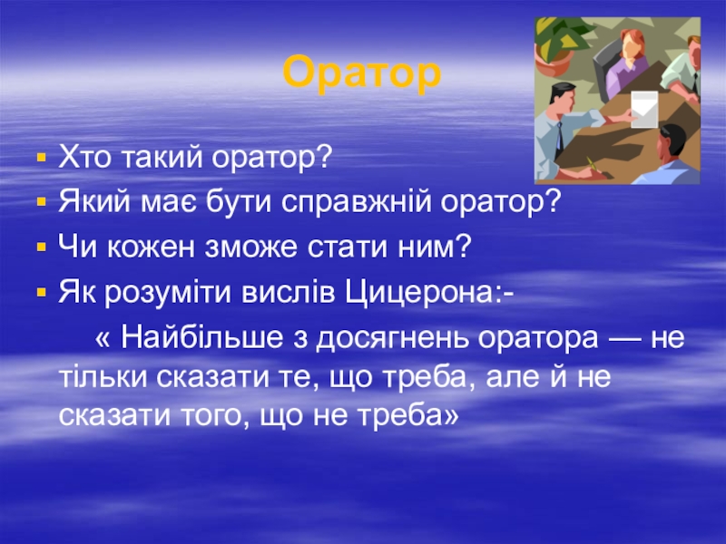 «Гарний оратор — той, хто вміє говорити просто про складне» (Скилеф).