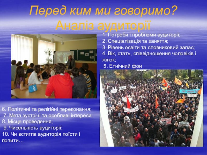 Мета оратора – переконати слухачів у слушності власної позиції.