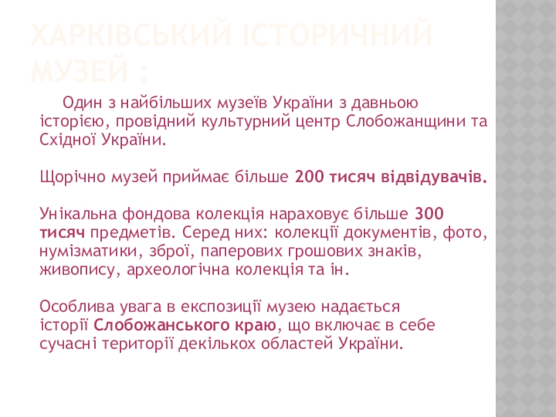Слайд 3ХАРКІВСЬКИЙ ІСТОРИЧНИЙ МУЗЕЙ :
