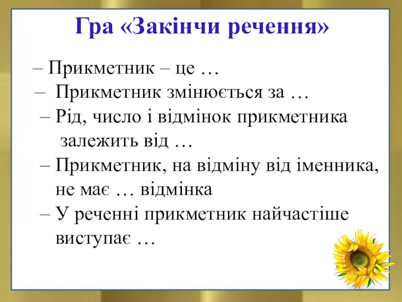 – Рід, число і відмінок прикметника