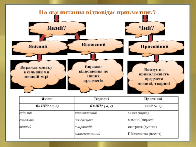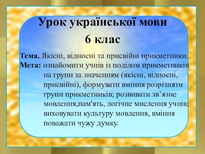 Мета: ознайомити учнів із поділом прикметників
