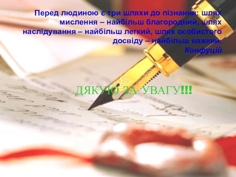 Слайд 16Перед людиною є три шляхи до пізнання: шлях мислення – найбільш