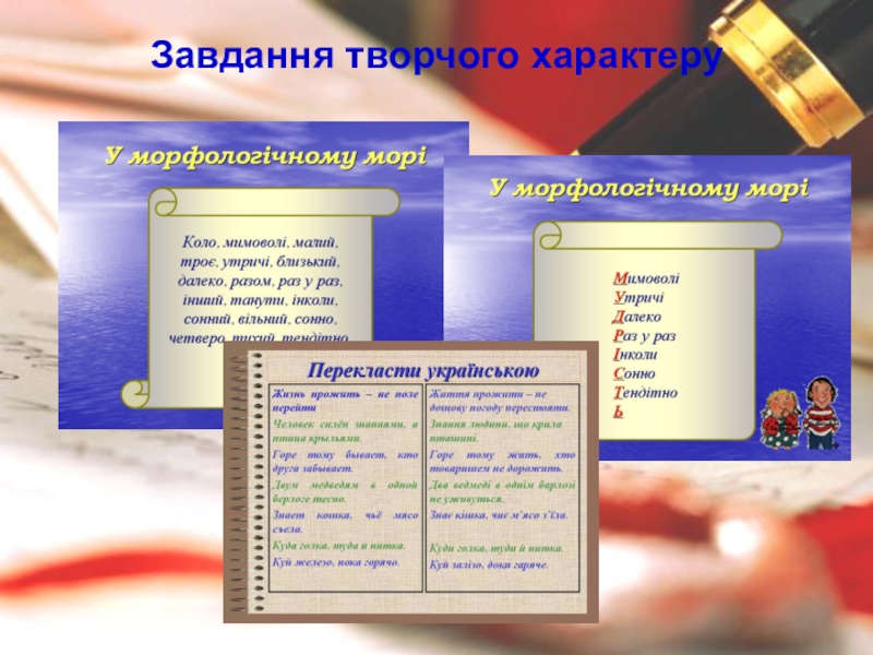 вправи та завдання творчого характеру в процесі виконання яких розвивається логіка, критичне мислення, закріплюються основні знання і вміння.
