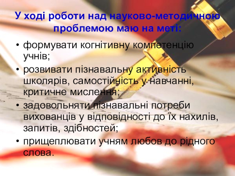 Слайд 3У ході роботи над науково-методичною проблемою маю на меті:
