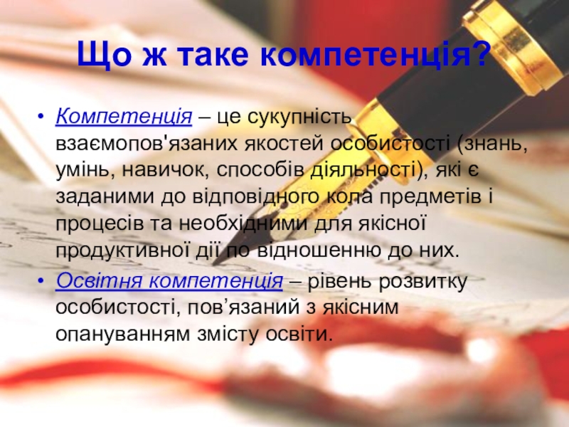 Освітня компетенція – рівень розвитку особистості, пов’язаний з якісним опануванням змісту освіти.