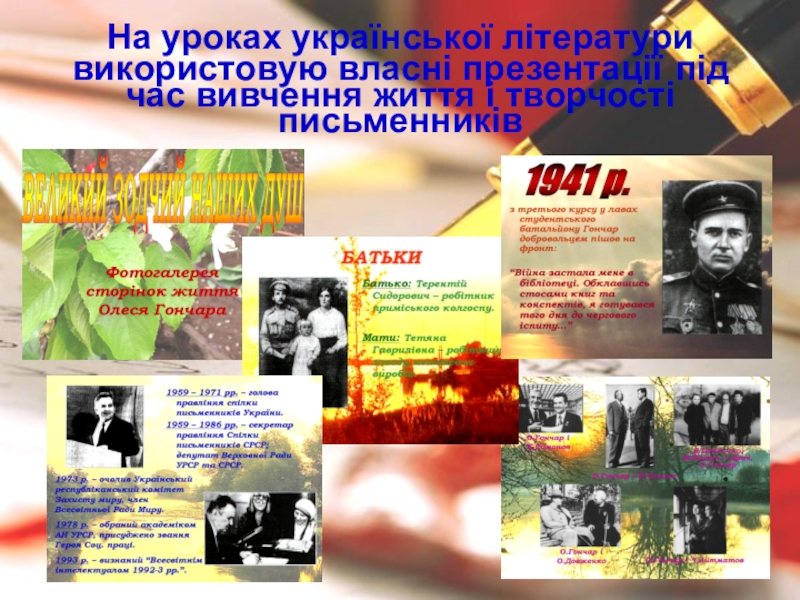 Слайд 10На уроках української літератури використовую власні презентації під час вивчення життя