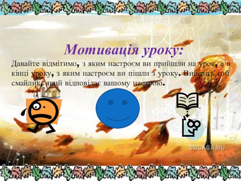 Мотивація уроку: Давайте відмітимо, з яким настроєм ви прийшли