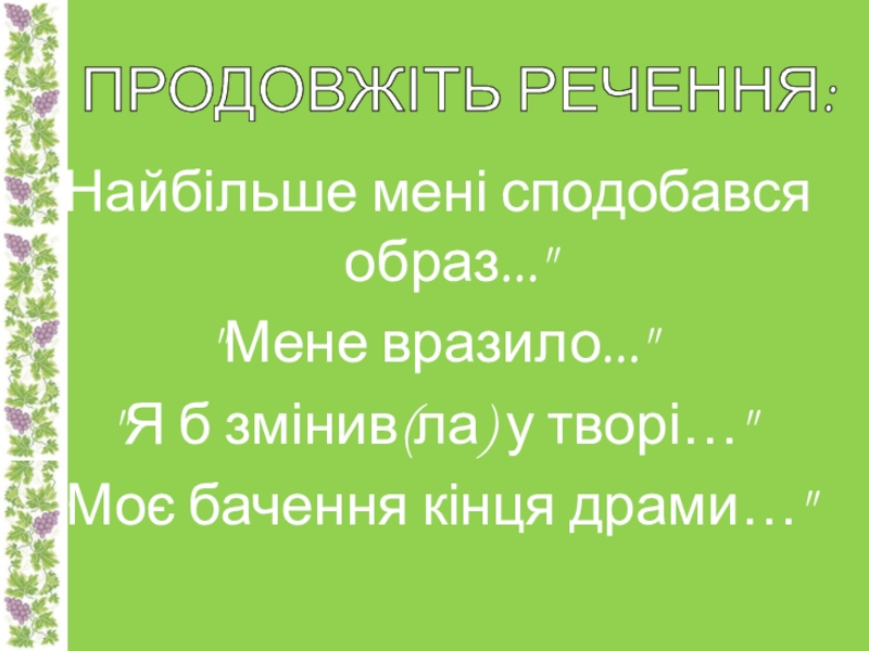 Слайд 15ПРОДОВЖІТЬ РЕЧЕННЯ: