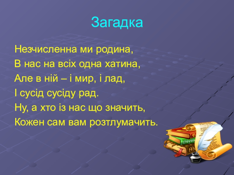 Это сайт презентаций, где можно хранить и обмениваться своими презентациями, докладами, проектами, шаблонами в формате PowerPoint с другими пользователями. Мы помогаем школьникам, студентам, учителям, преподавателям хранить и обмениваться учебными материалами.