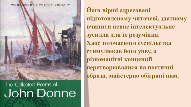 Слайд 20Його вірші адресовані підготовленому читачеві, здатному вчинити певне інтелектуальне зусилля для їх
