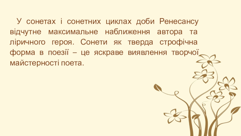 Слайд 26У сонетах і сонетних циклах доби Ренесансу відчутне максимальне наближення автора