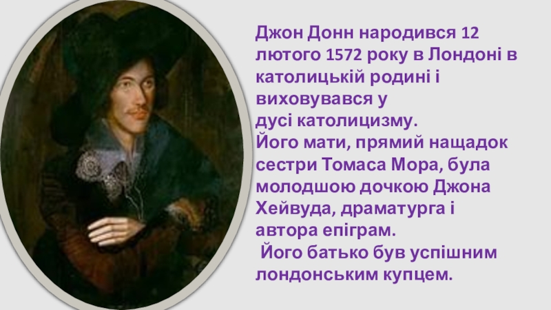 Слайд 11Джон Донн народився 12 лютого 1572 року в Лондоні в католицькій родині