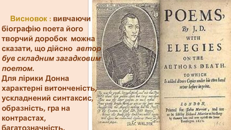 Слайд 30Висновок: Джон Донн у ранній творчості порушував класичні правила побудови сонету,
