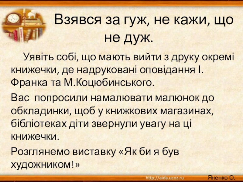 Уявіть собі, що мають вийти з друку окремі книжечки, де надруковані оповідання І.Франка та М.Коцюбинського.