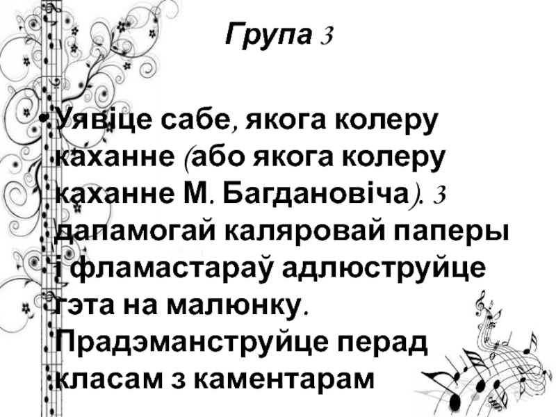 Багдановіча). 3 дапамогай каляровай паперы і фламастараў адлюструйце гэта на малюнку. Прадэманструйце перад класам з каментарам