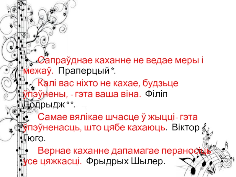 • Самае вялікае шчасце ў жыцці-, што цябе Вернае каханне кахаюць. Віктор Гюго.