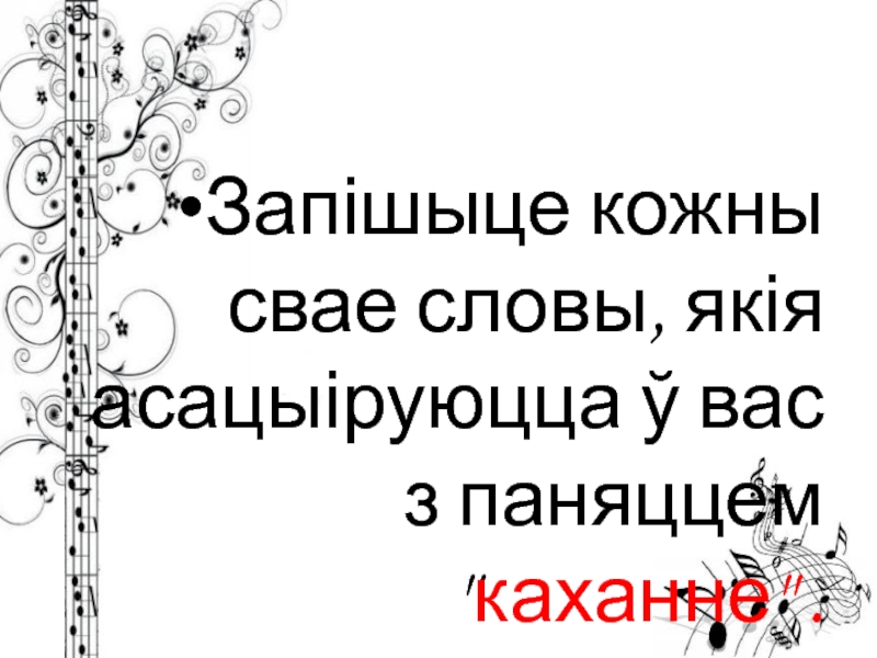Слайд 4Запішыце кожны свае словы, якія асацыіруюцца ў вас з паняццем "каханне"