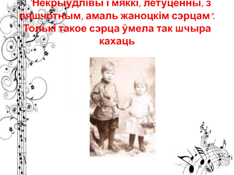 Слайд 11: "Некрыўдлівы і мяккі, летуценны, з пяшчотным, амаль жаноцкім сэрцам". Толькі