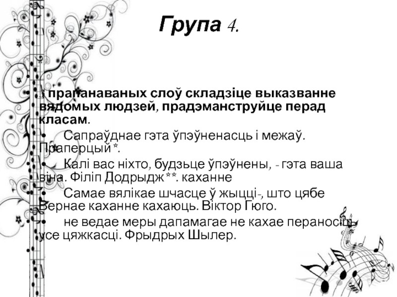 3 прапанаваных слоў складзіце выказванне вядомых людзей, прадэманструйце перад класам.