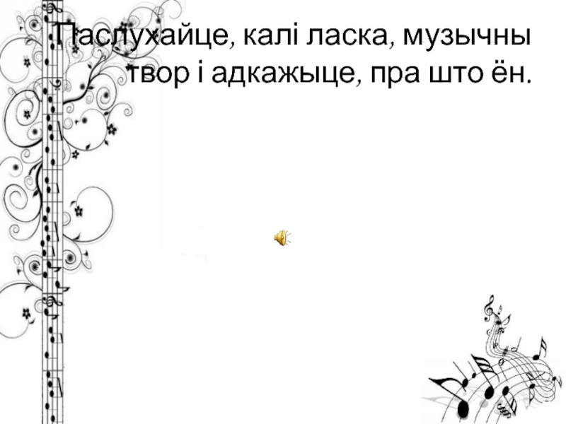 Слайд 2Паслухайце, калі ласка, музычны твор і адкажыце, пра што ён.